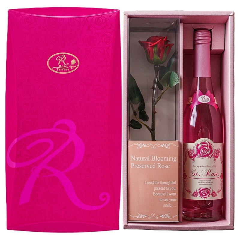 「セイントローズ1本+開花プリザーブドローズ1本」のスペシャルギフト。