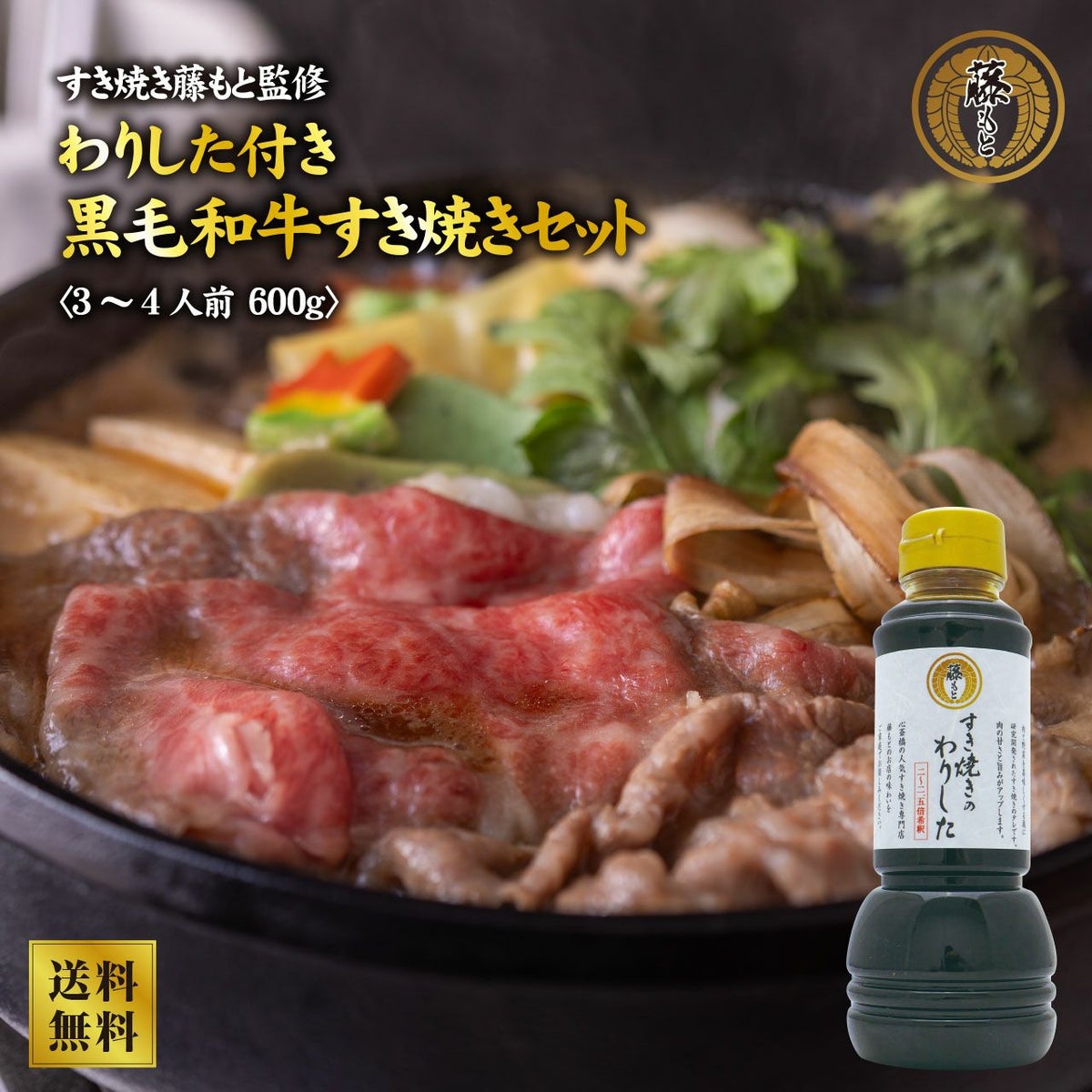 「すき焼き藤もと監修!わりした付 黒毛和牛すき焼きセット」を