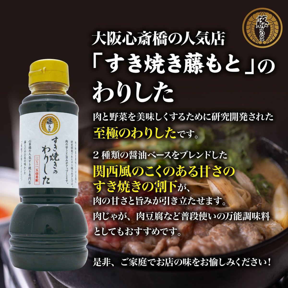 2種類の醬油ベースをブレンドした関西風のこくのある甘さのすき焼きの割下が、