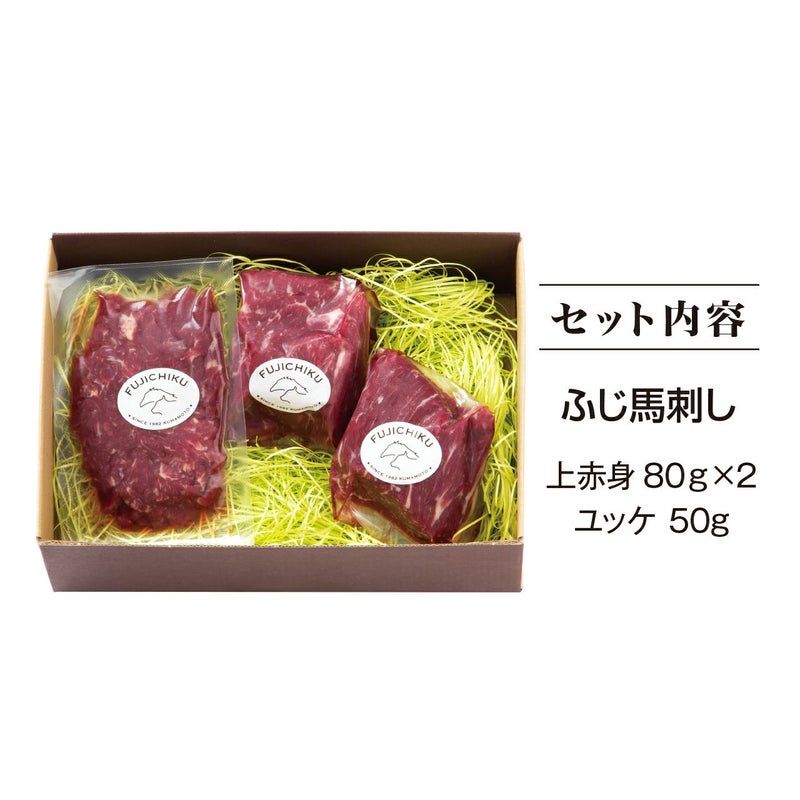 ・馬刺し上赤身80g×2・ユッケ50g ※タレ・生姜小袋付。