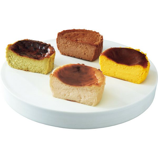 スペイン・バスク地方発祥の焦げ目に特徴あるチーズケーキ。北海道のクリームチーズをたっぷりと使用した濃厚さがマッチした新食感スイーツです。定番のプレーンのほか、道産えびすかぼちゃ、ピスタチオ、チョコレートを加えた4種の味が楽しめるセット品です。