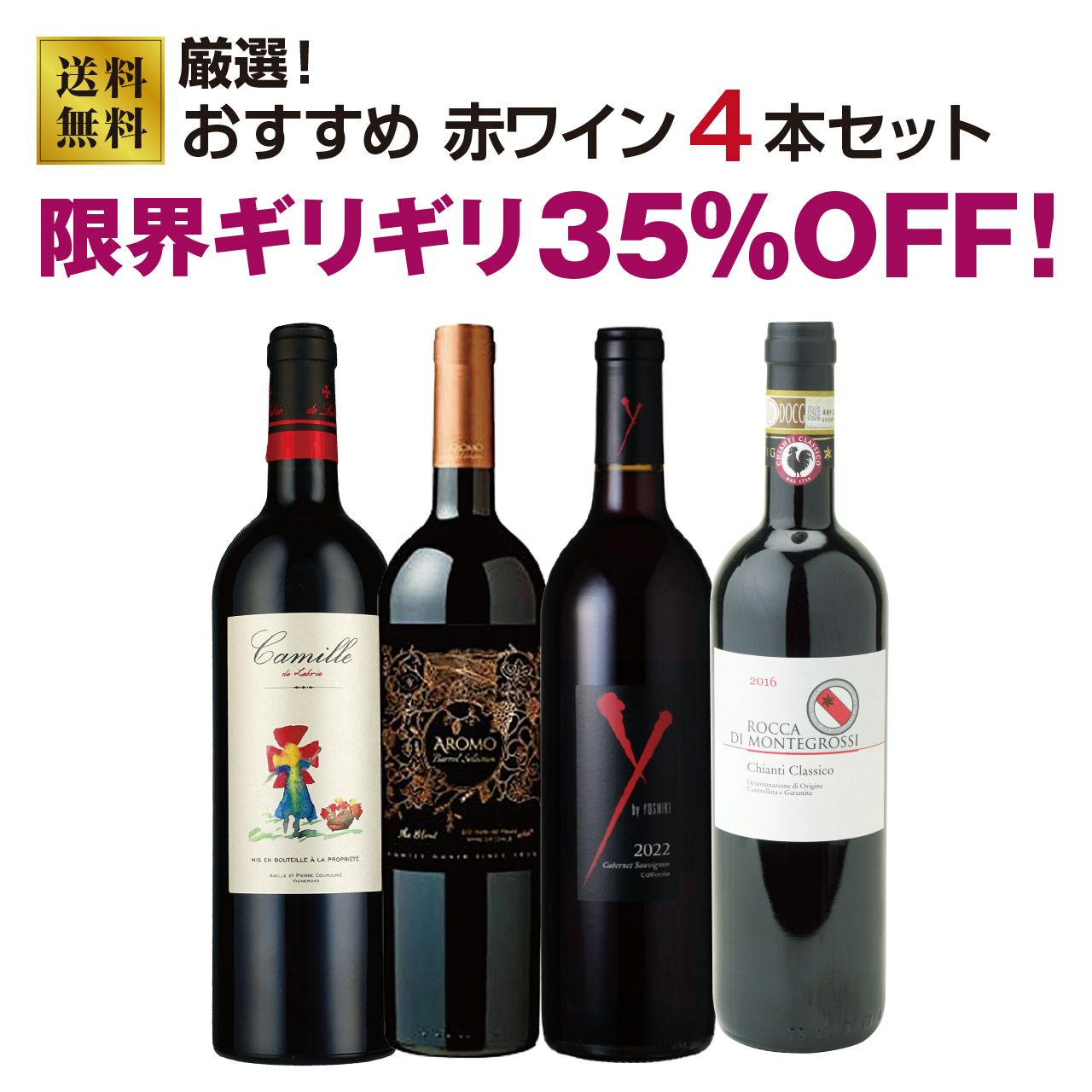 【送料無料】厳選!おすすめ赤ワイン4本セット【約35%OFF】