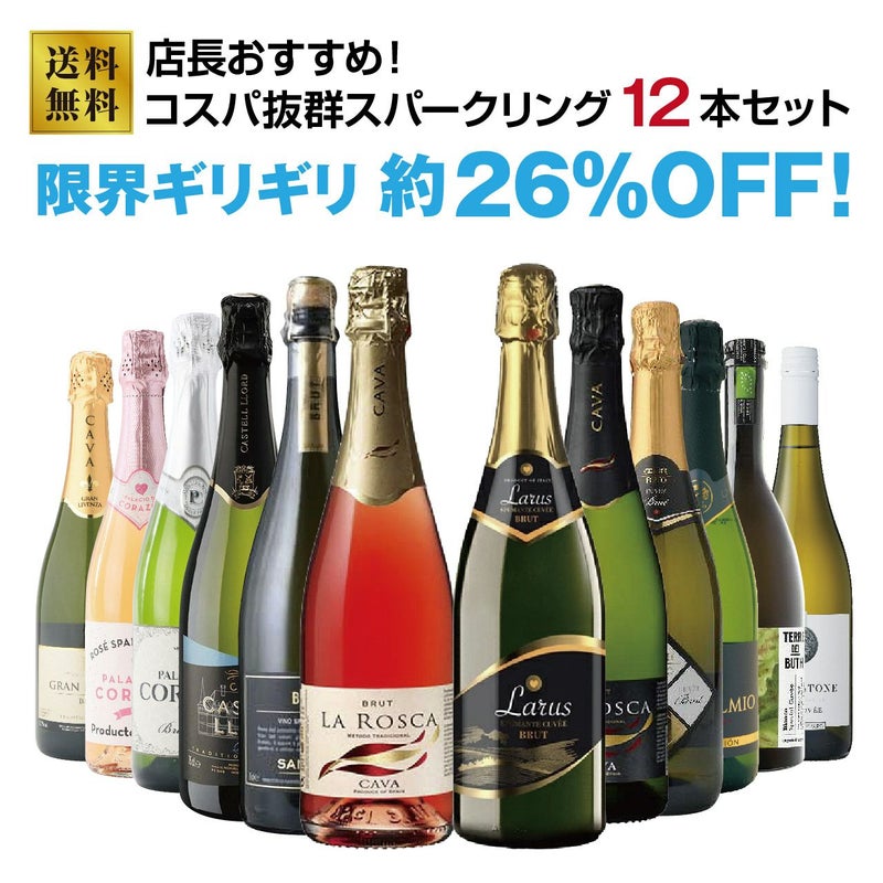 コスパ抜群のスパークリングワインを詰め込んだお得な12本セットです。