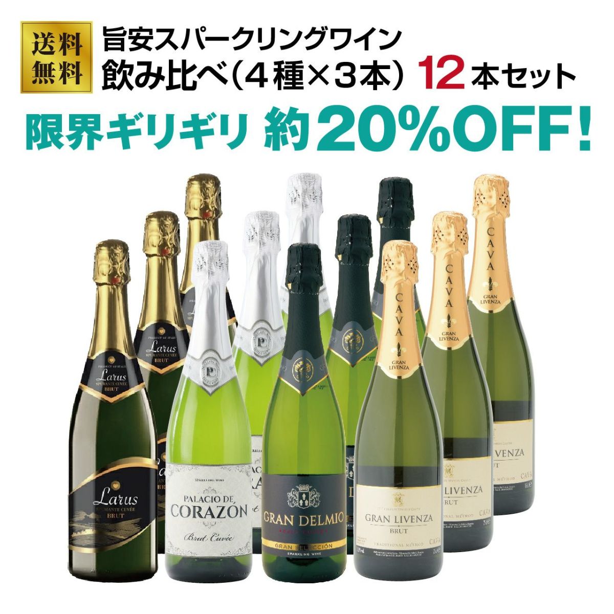 旨安スパークリングワイン12本飲み比べセット!(4種×3本)