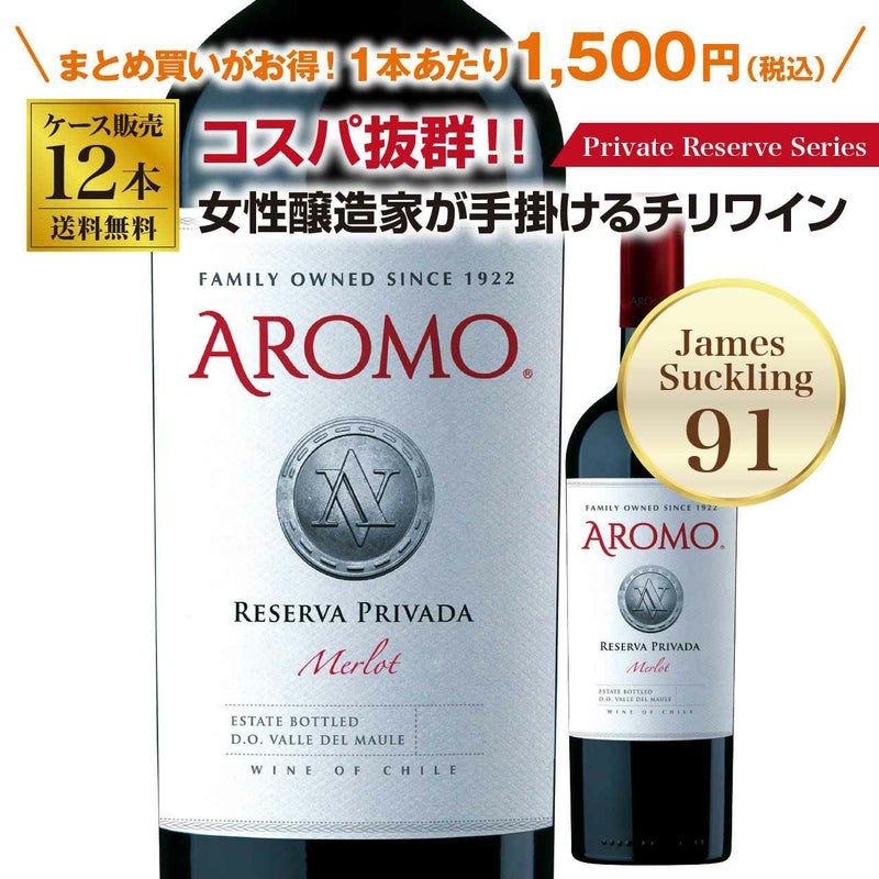 コスパ抜群のチリワイン!アロモのプライベートリザーブシリーズ メルロー12本セット!