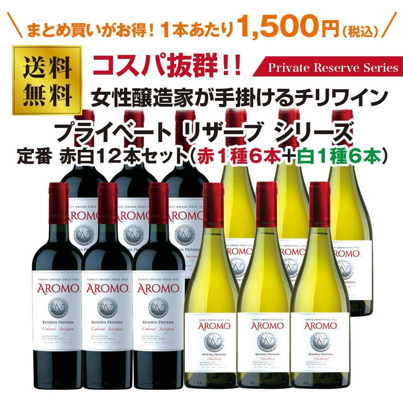 コスパ抜群のチリワイン!アロモのプライベートリザーブシリーズ 定番赤白12本セット!