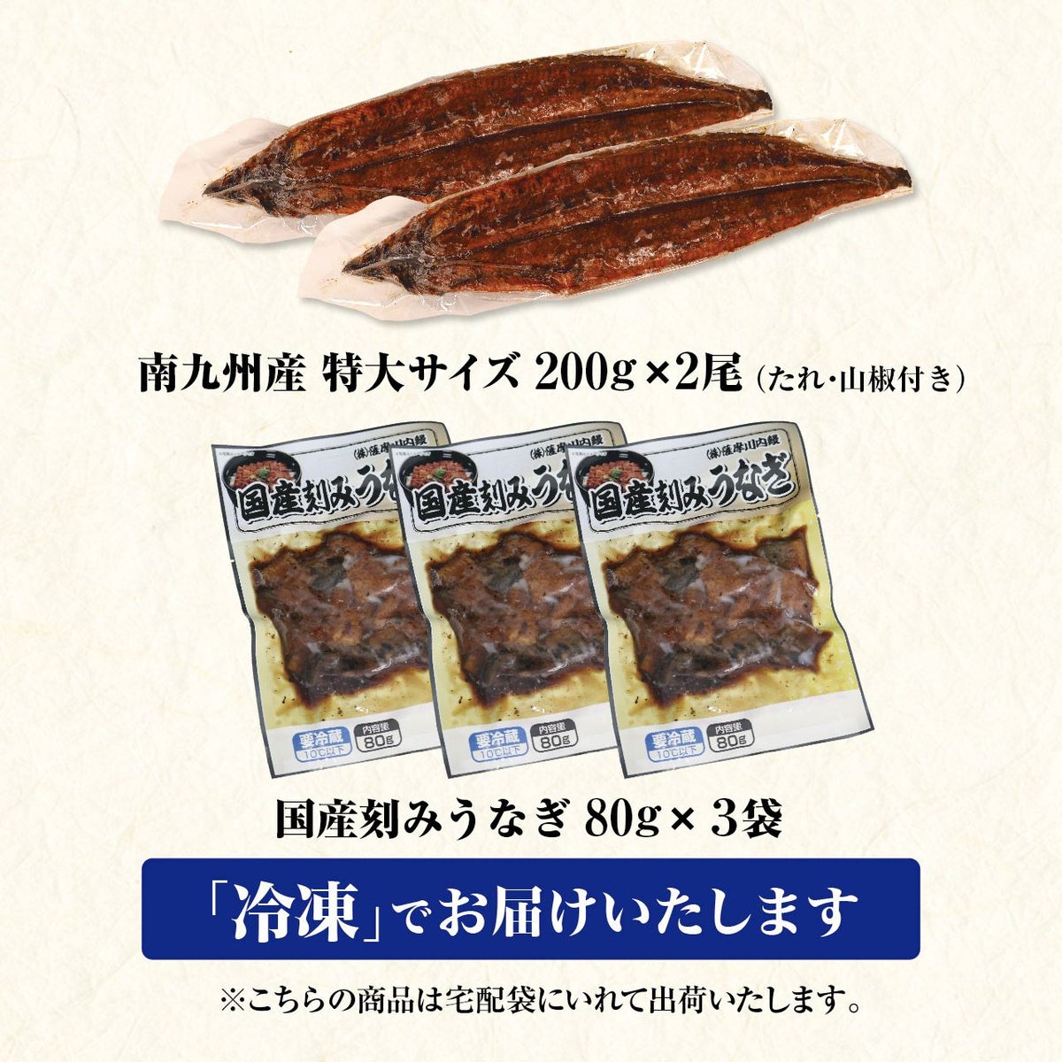 【本場清水水産】国産うなぎ2種セット(南九州産 特大サイズ200g×2尾&刻みうなぎ 80g×3袋)