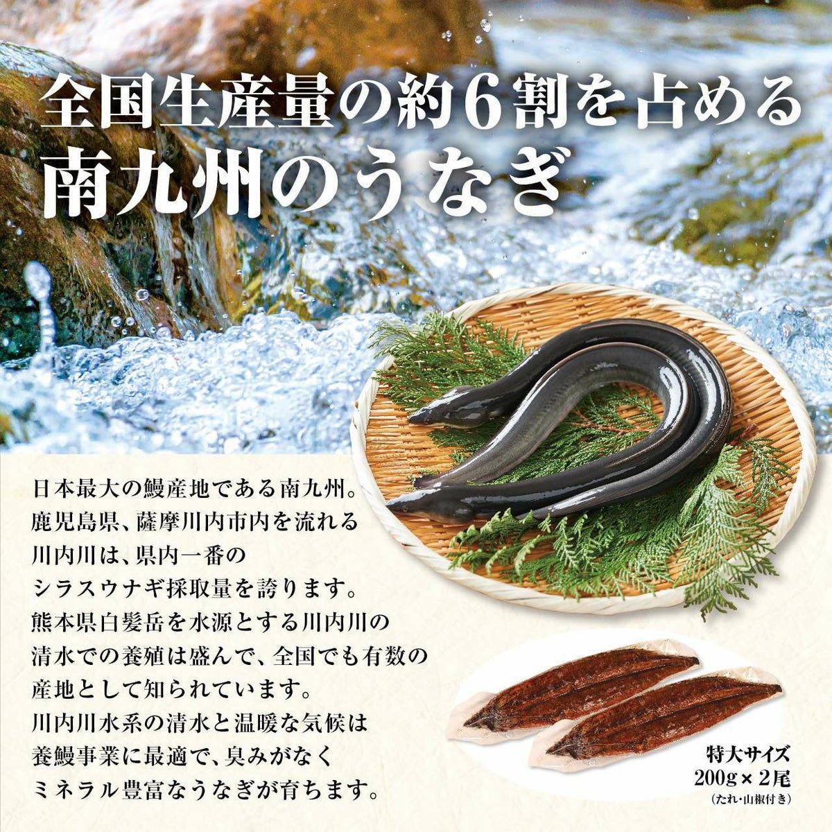 南九州産うなぎ 長焼き200g 2尾 【ギフト用】 ※食べ方説明書、タレ&山椒付き