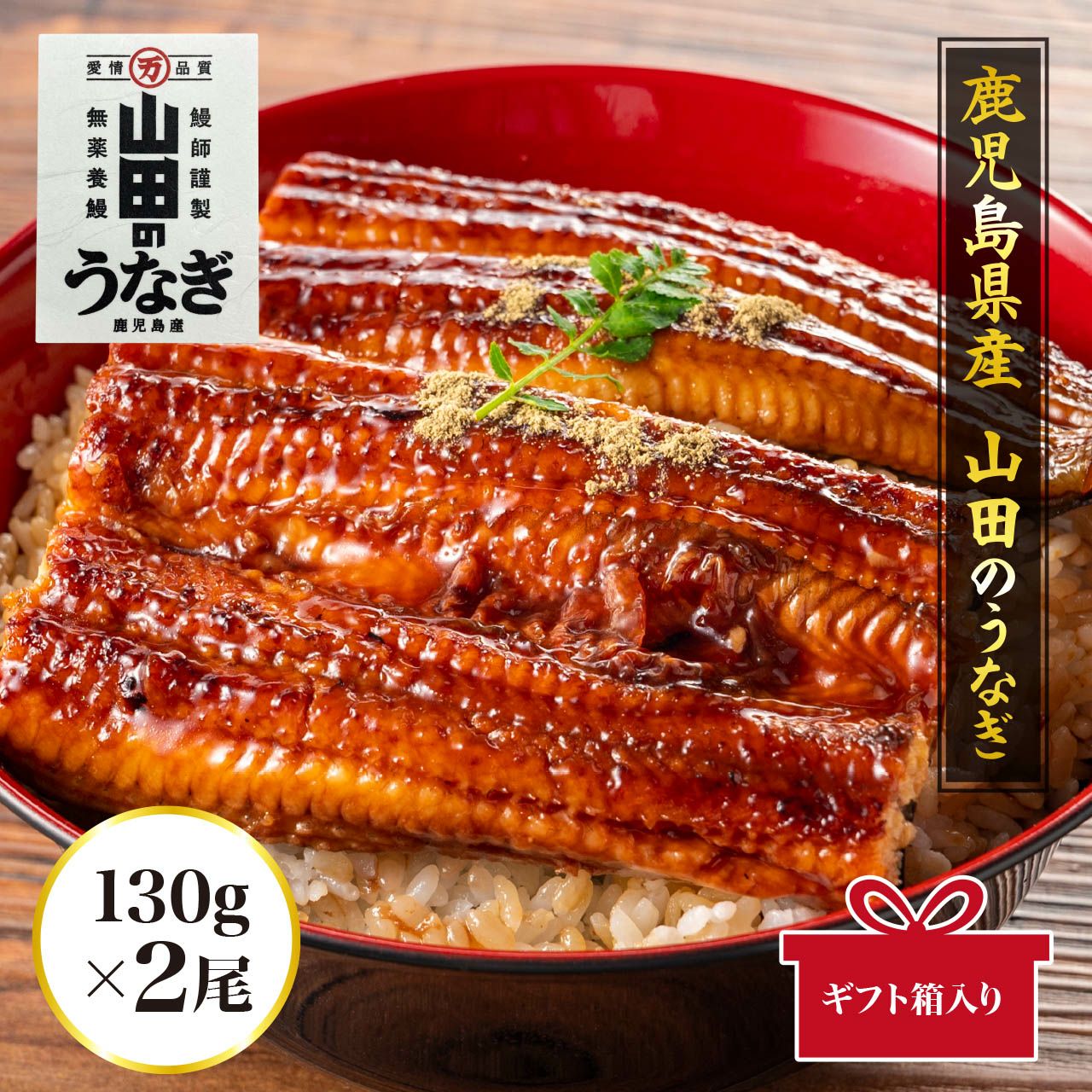 鹿児島県産 「山田のうなぎ」130g 2尾(ギフト用 ギフトBOX付)