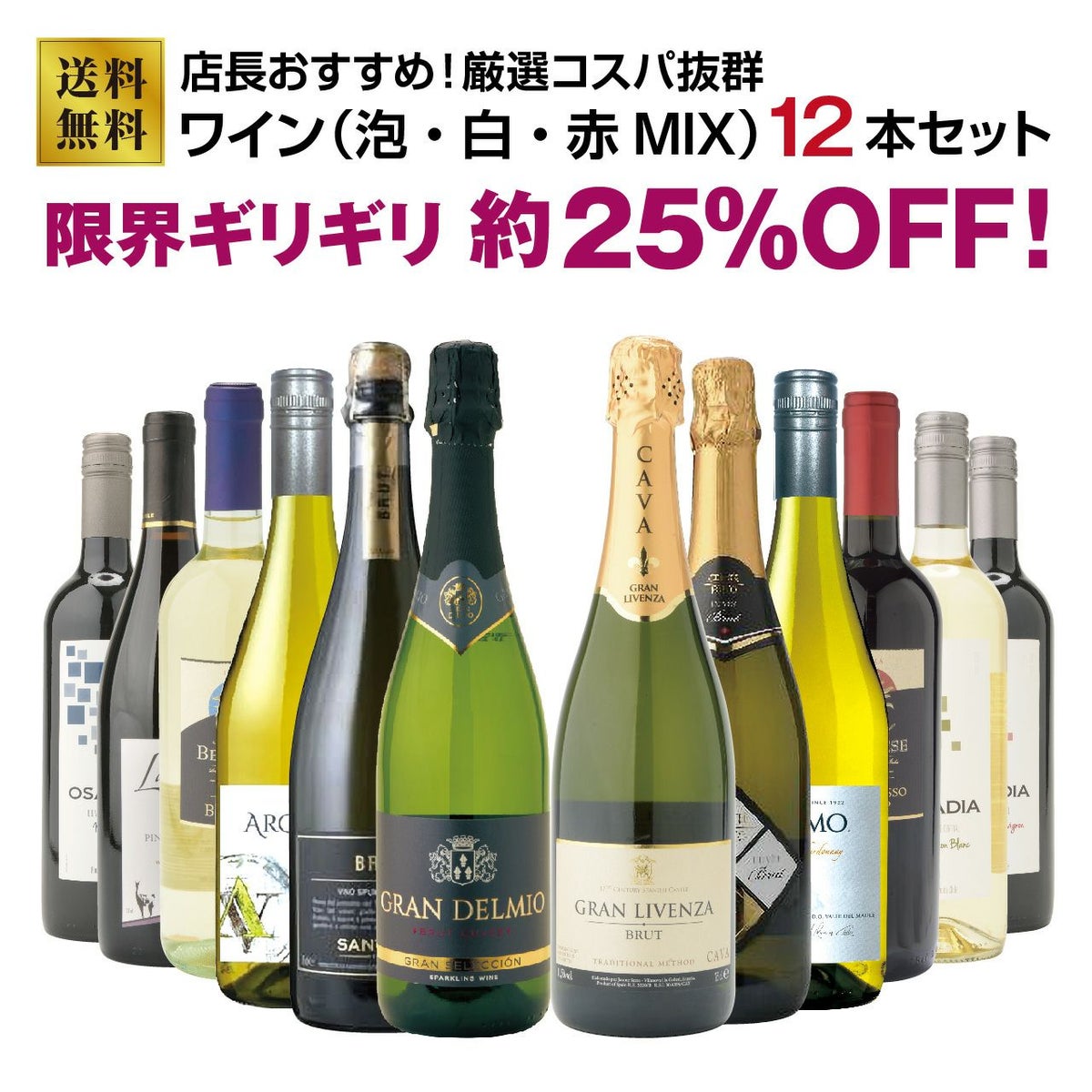 店長オススメ!厳選コスパ抜群ワイン12本セット!(泡・白・赤MIX)